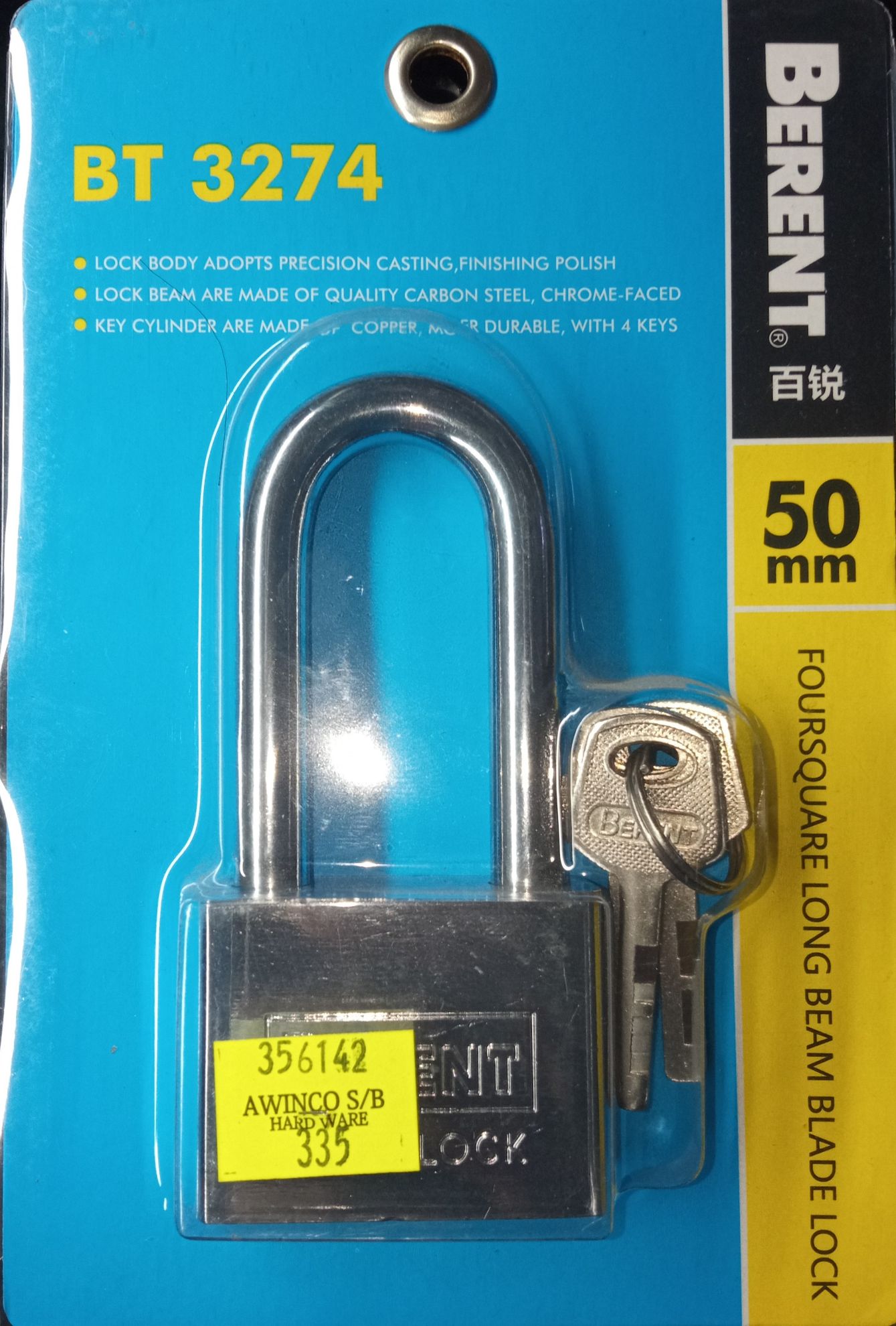 The BERENT Foursquare Short Beam Blade Lock 50mm (BT3274) is a robust padlock designed to provide enhanced security for various applications.