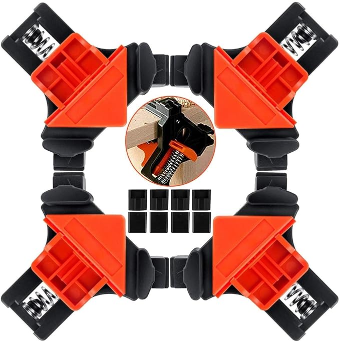 Simple Operation: Not only for the 90-degree angle, but also for the 45-degree saw. perfect for aligning, nailing, woodworking, welding, screwing, making cabinets, box, and picture frames,assemble bookshelves.,They are suitable for corners as well as T-joints, even when the boards have a different thickness.