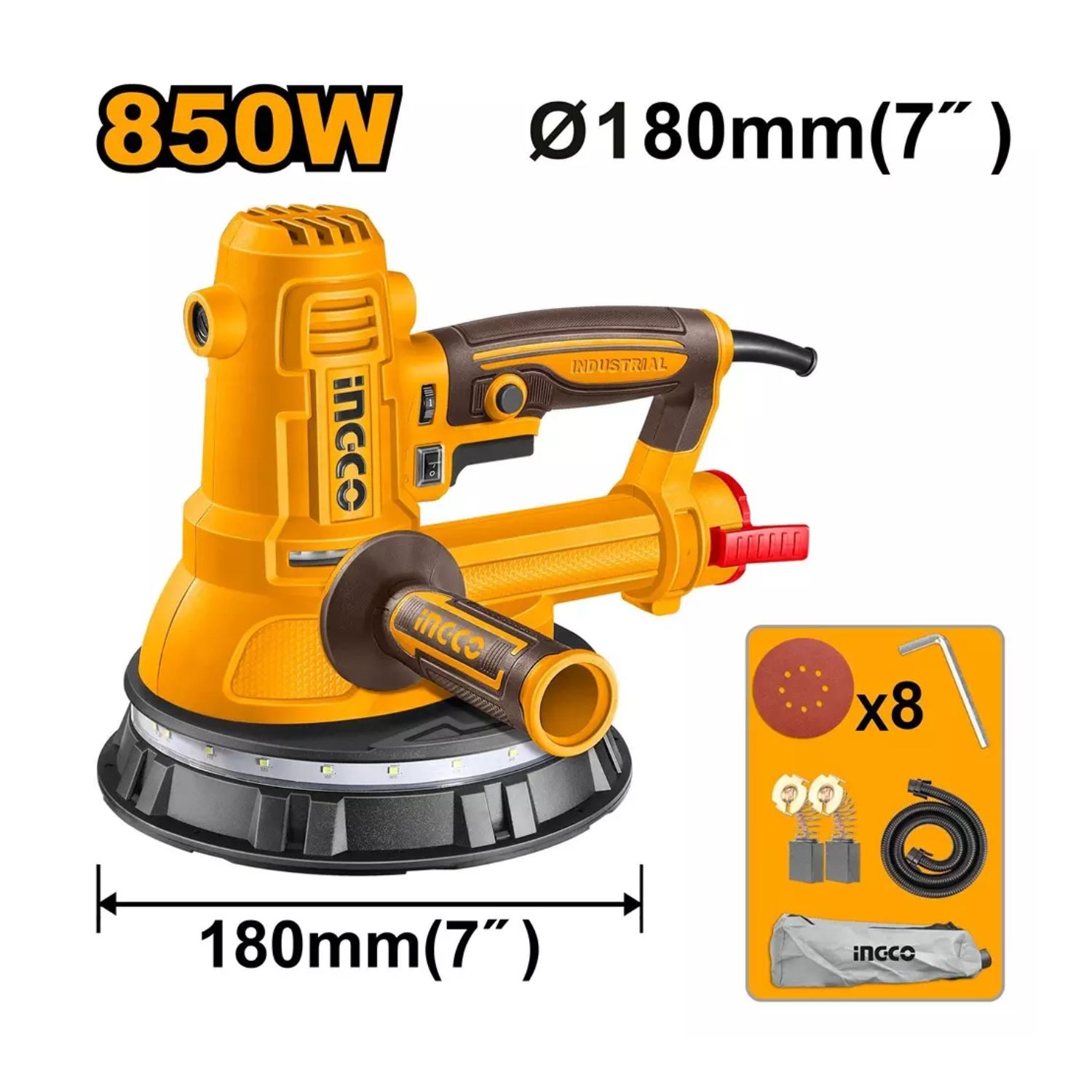 INGCO 850W Drywall Sander DWS10508 with 8Pcs Sanding Paper 850W Drywall Sander DWS10508 with 8 Pcs Sanding Paper 7 inch Straight-line Sander