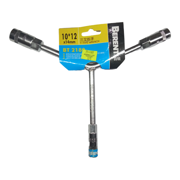 The BERENT Y Spanner BT2180 is a durable, multi-size hand tool crafted to provide convenience, strength, and superior control. Featuring three frequently used metric sizes—10mm, 12mm, and 14mm—this Y-shaped spanner is ideal for a variety of mechanical and maintenance tasks