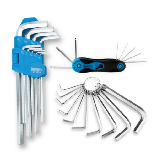 Hex keys, commonly known as Allen keys/wrenches, are a very simple hand tool of the general spanner and socket family, used for tightening and loosening hexagonal bolts and other compatible fasteners. Sizes: 1.5/2/2.5/3/3.5/4/5/6mm